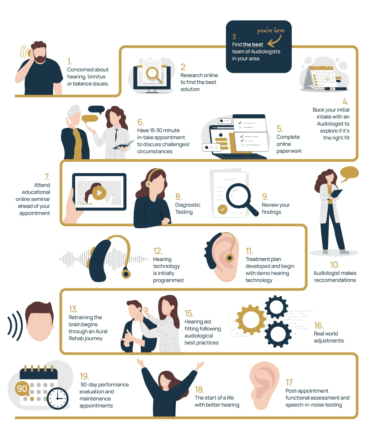 Hearing treatment is a journey, not a quick fix. We’re here to guide you with expert care every step of the way.